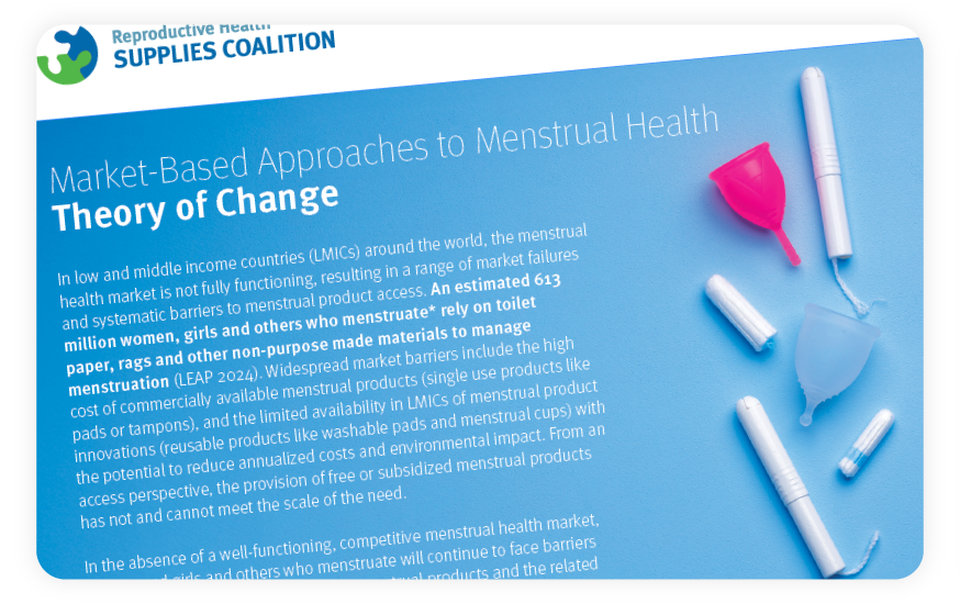 Learn more in the newly published theory of change and corresponding brief created by RHSC’s Menstrual Health Supplies Workstream, in collaboration with the Market Development Approaches Working Group.
